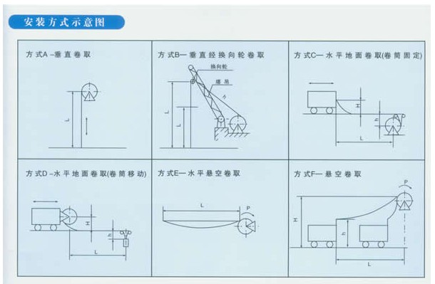 8、電動式卷筒結構形式以懸臂式為主(一般不標注)。