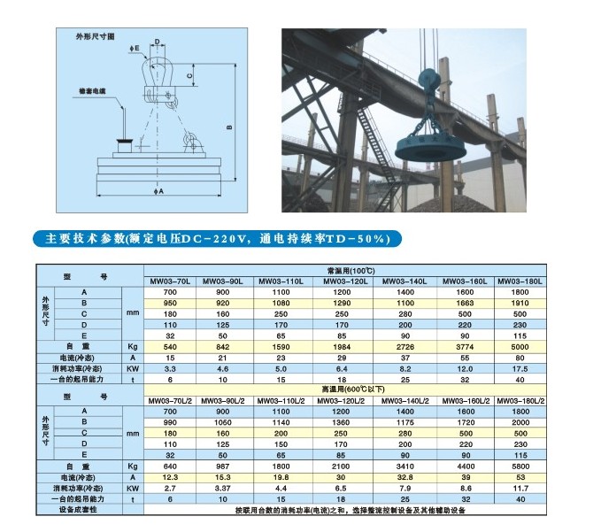 1、根據整塊鋼坯磁路大的特點而設計的最佳磁路,消費功率小,自重輕,起吊能力大,安全可靠。